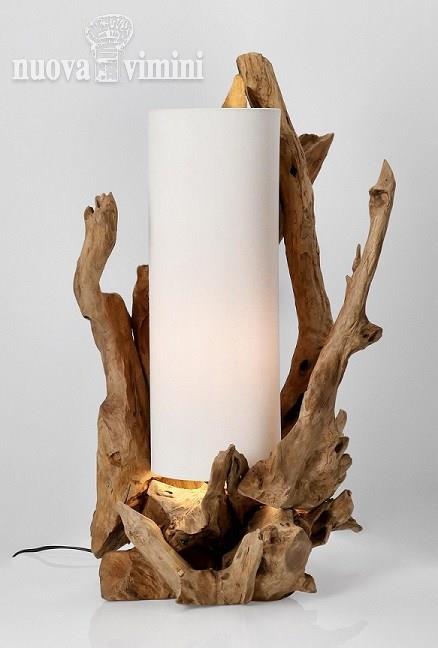 Legno di teak riciclato, finitura naturale a base d'acqua. Paralume in poliestere.