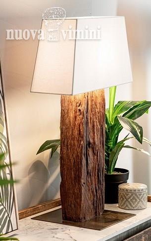 Legno di teak riciclato, finitura naturale a base d'acqua. Paralume in poliestere.