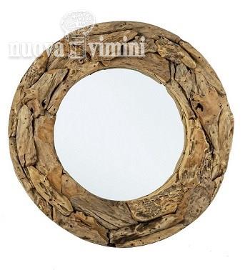 Radici di teak con finitura rustica naturale e vetro. le forme originali create dal legno sono solo indicative, tutti i prodotti saranno diversi l'uno dall'altro. misura specchio:ø63