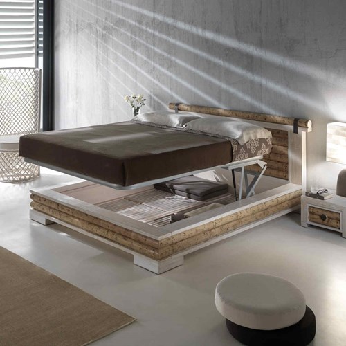 Infine, in camera da letto lo stile entico dà il meglio di sé. Naturalmente, tutto ruota attorno al letto. Pratica e utilissima la soluzione a contenitore, con rete alzabile per ricavare uno spazio adatto a riporre lenzuoli e biancheria da camera.