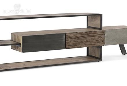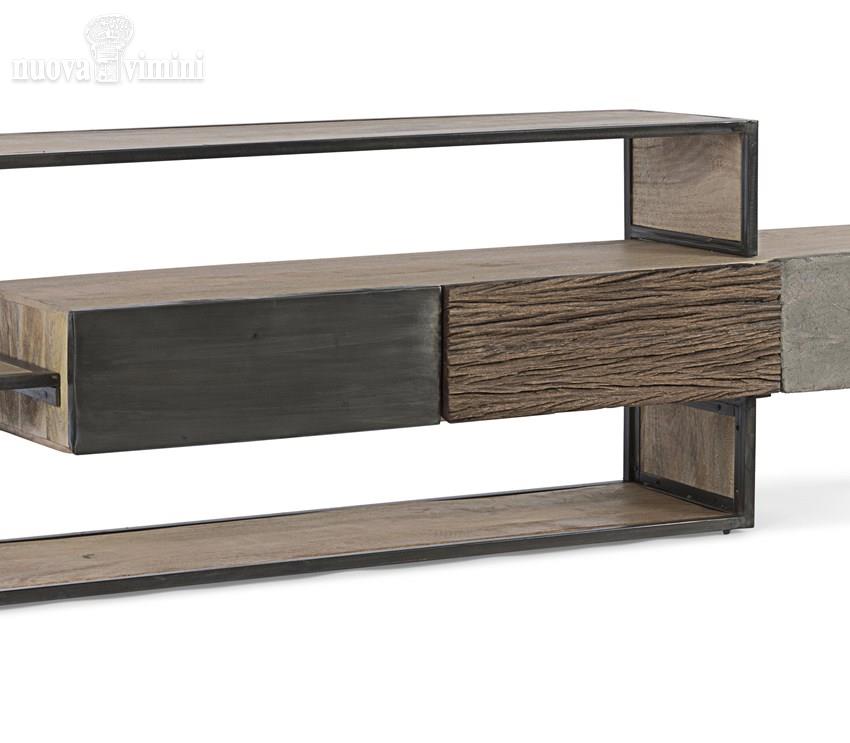 Telaio massiccio in mango e acacia, frontale anta in legno reciclato, laima acciaio o fibra di cemento.