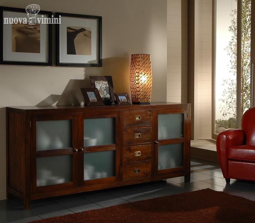 Anta con vetro satinato opaco, struttura in teak tinto noce