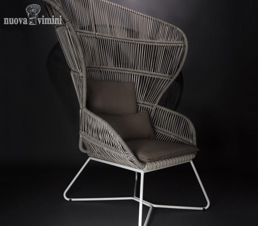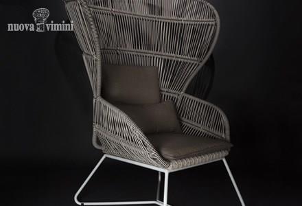 Poltrona Pavone Virgo in rattan sintetico con cuscini sfoderabili.