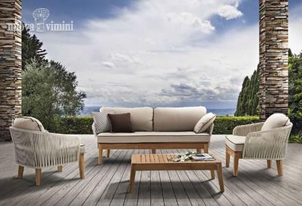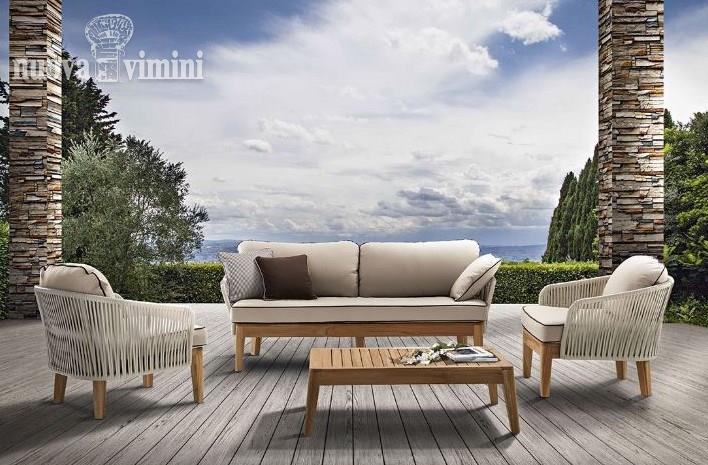 Struttura in Teak e alluminio, intreccio in corda olefine/pp.