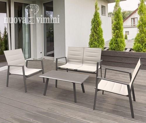 Struttura in alluminio BIANCO, TORTORA o TAUPE o ANTRACITE textilene imbottito GRIGIO CHIARO, CREMA o TAUPE o ANTRACITE.